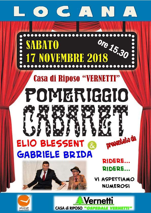 Alla Casa di Riposo Vernetti "Pomeriggio Cabaret" presentato da Elio Blessent e Gabriele Brida...ci sarà da ridere!