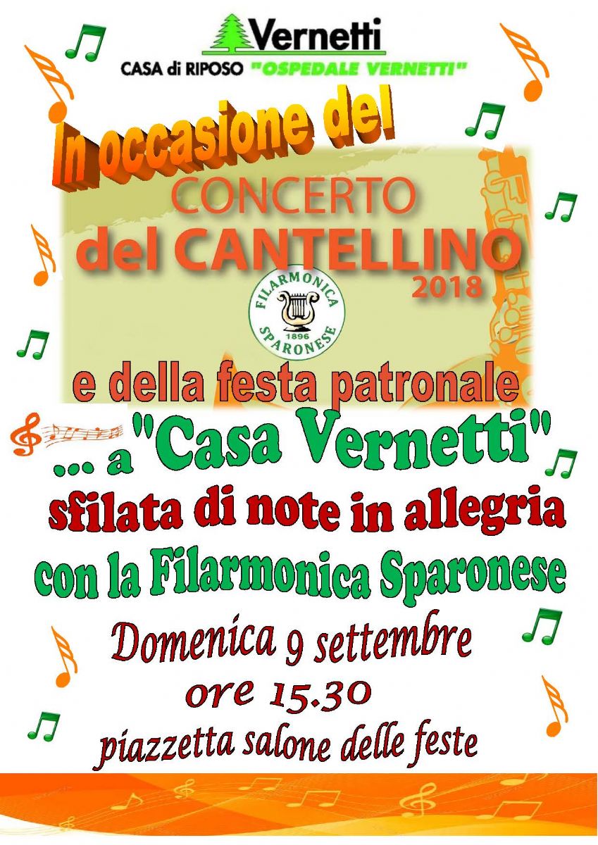 In occasione del COncerto del Cantellino 2018 e della festa patronale...a "Casa Vernetti" sfilata di note in allegria con la Filarmonica Sparonese. Vi aspettiamo nella piazzetta delle feste!