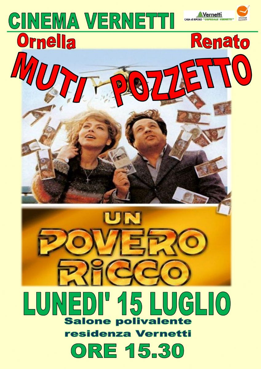 In programma per lunedì 15 luglio "UN POVERO RICCO" con Ornella Muti e Renato Pozzetto.