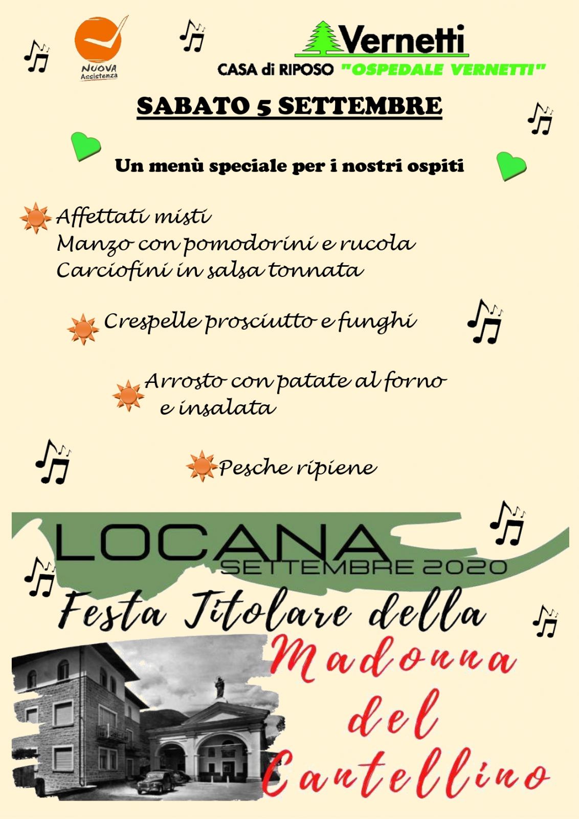 Un menù speciale per i nostri ospiti in occasione della Festa Titolare della Madonna del Cantellino