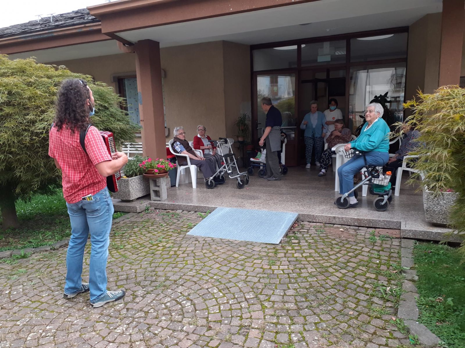 Gli ospiti all'esterno e nel rispetto delle norme previste dal momento che stiamo vivendo, accompagnati dagli operatori hanno potuto sentirsi partecipi della festa del paese.