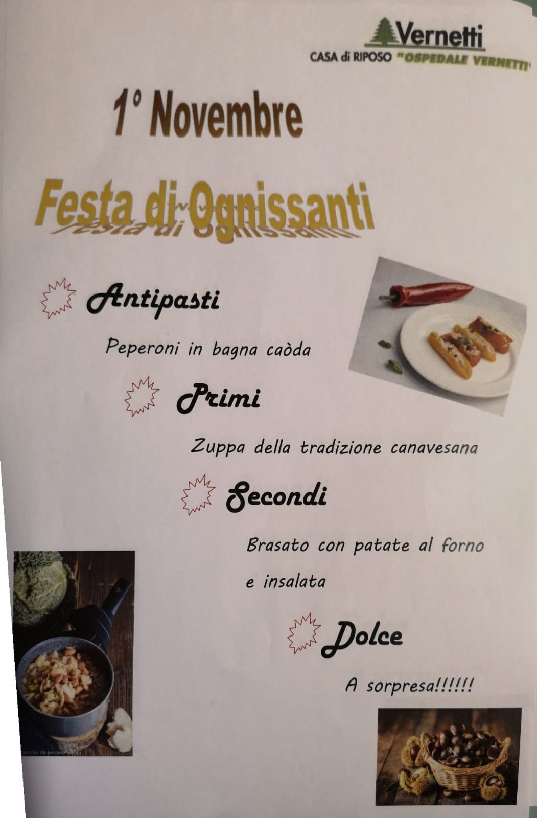 Un menù speciale per i nostri ospiti, curato con attenzione dalle brave cuoche della RSA VERNETTI.