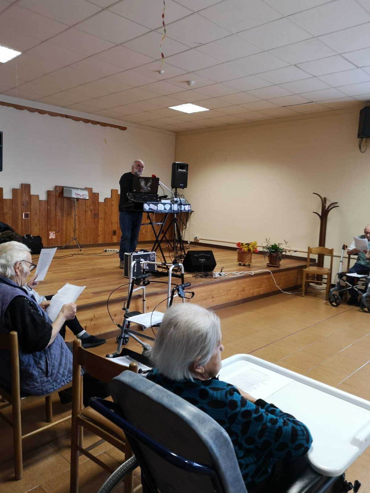 Gli ospiti hanno cantato un'intero pomeriggio supportati dalla psicologa Cinzia che ha creato il nuovo coro proprio con gli ospiti che adorano la musica.