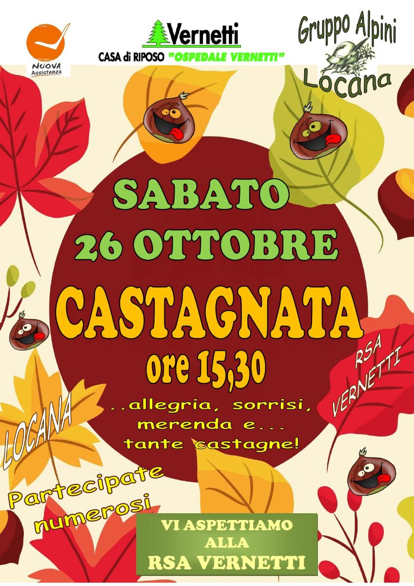 Sabato 26 ottobre 2019 CASTAGNATA alla RSA VERNETTI in collaborazione con il Gruppo Alpini di Locana...in struttura allegria, sorrisi e tante castagne per i nostri ospiti e per tutti coloro che parteciperanno all'allegro pomeriggio!