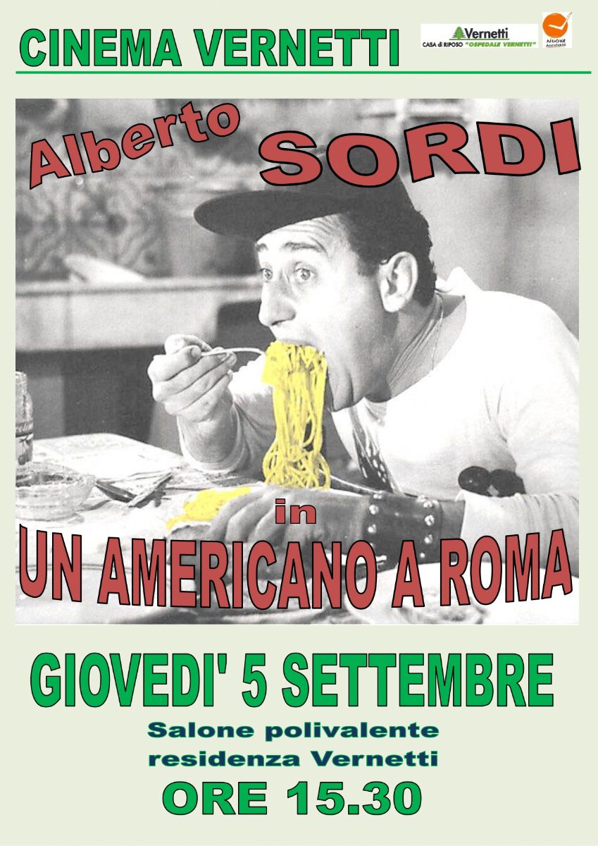 Film "UN AMERICANO A ROMA" uscito nel 1954, genere comico/commedia con ALBERTO SORDI è in programma presso la Residenza Vernetti giovedì 5 settembre ore 15.30.