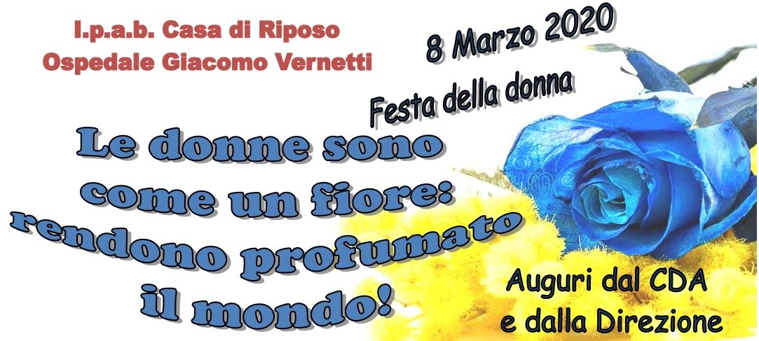 Auguri a tutte le donne della nostra RSA Vernetti, in questa giornata a loro dedicata, da parte della Direzione e di tutto il Consiglio di Amministrazione.
