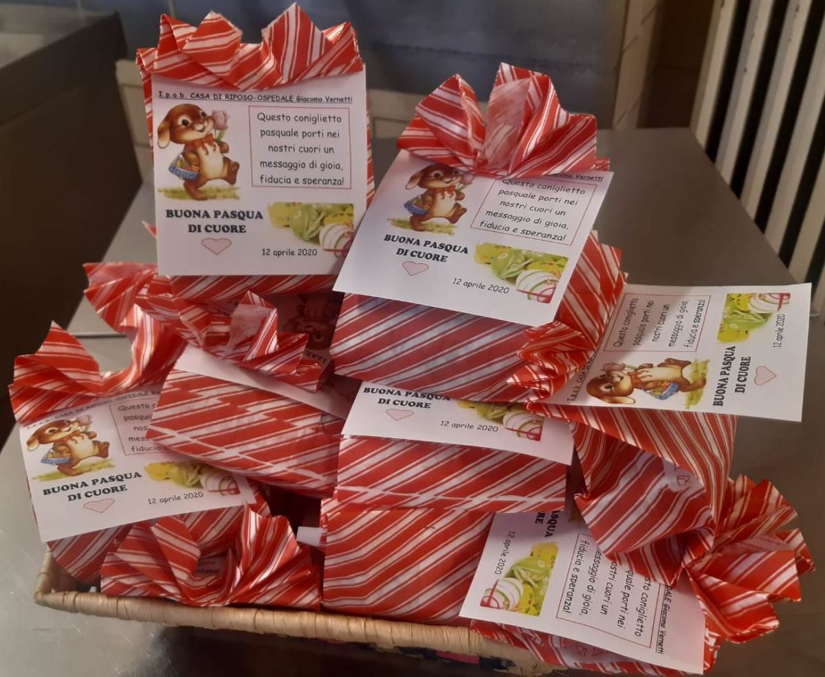 UN ALLEGRO CONIGLIETTO E' ARRIVATO ALLA RESIDENZA VERNETTI A PORTARE AGLI OSPITI AUGURI DI LUCE E SPERANZA E UN SACCHETTO CONTENENTE GOLOSI DOLCETTI PER LA PASQUA 2020.