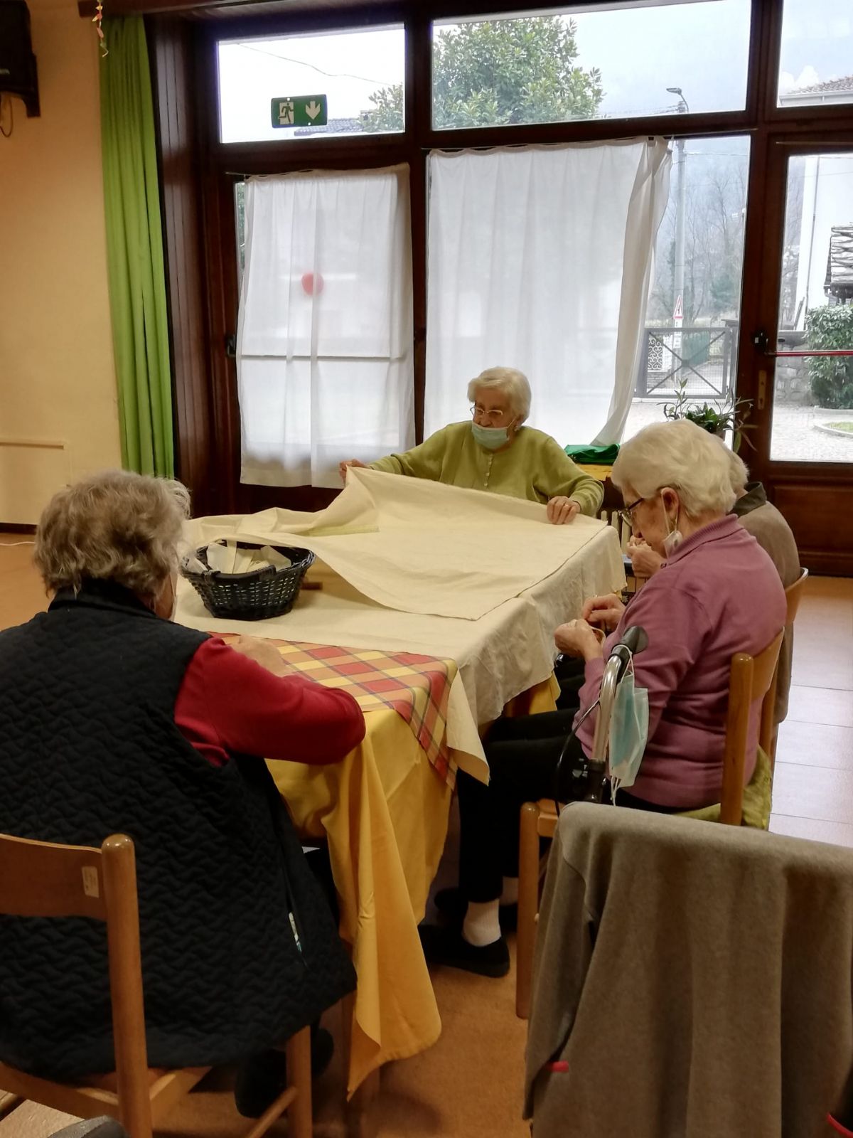 Le ospiti della RSA VERNETTI con il supporto della psicologa Cinzia hanno iniziato un bellissimo laboratorio di cucito.